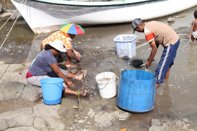 et marchent dans le lagon à la recherche des z'ourites avec leur pique!